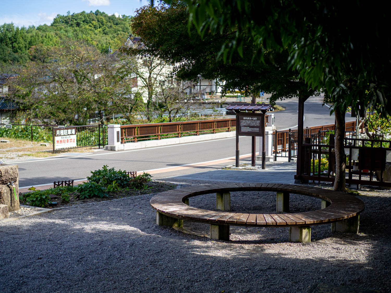 近くに丸いベンチがあり、お風呂上がりにくつろげます。
