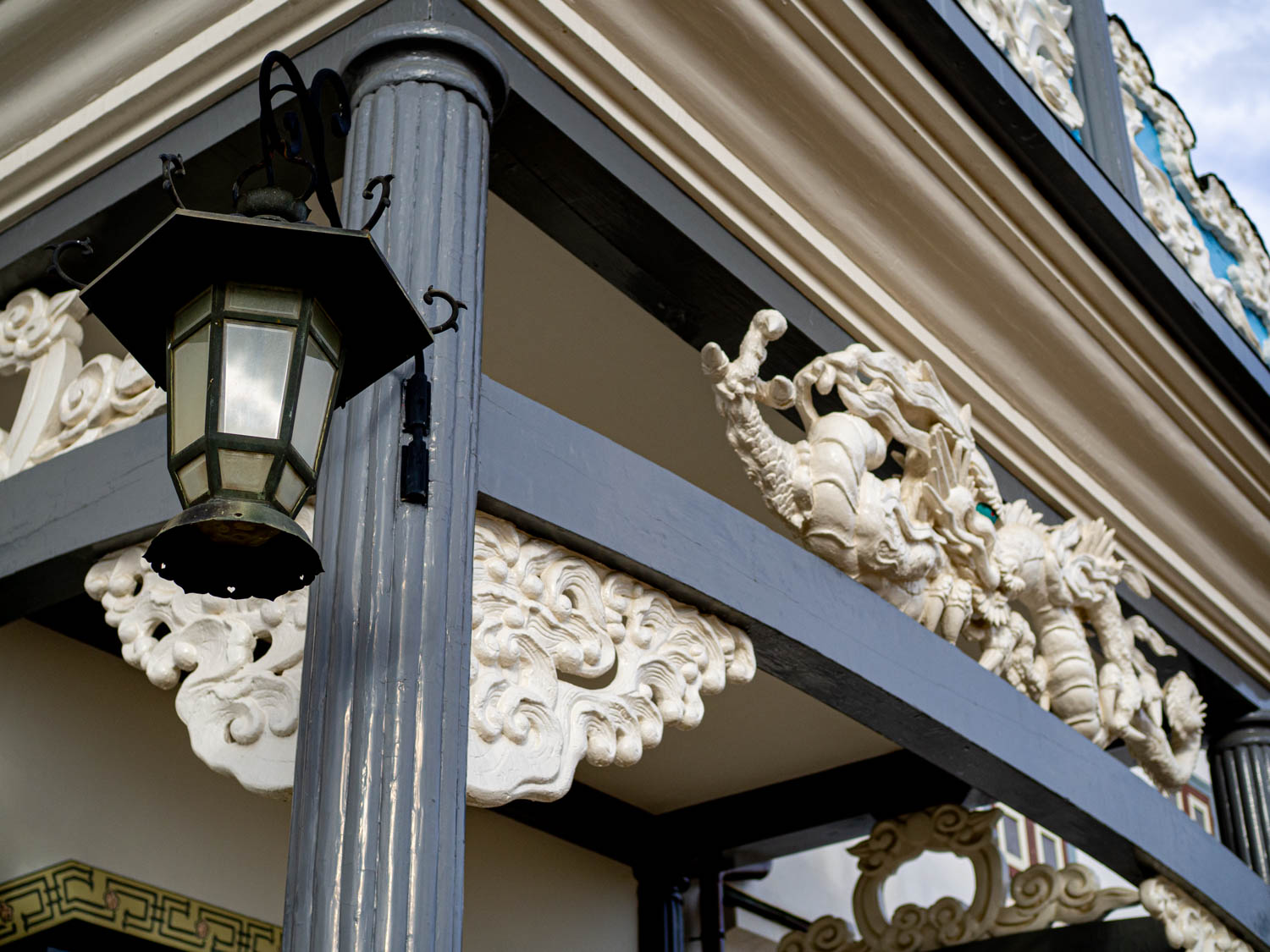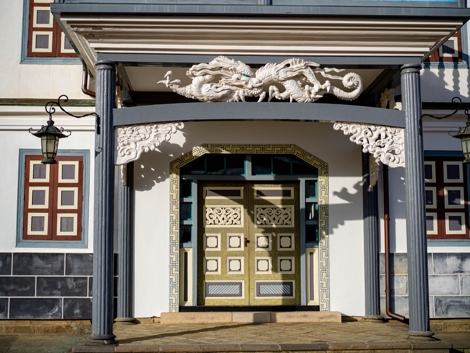 この建物のシンボルでもある、やや珍妙とも思える和洋折衷な装飾。