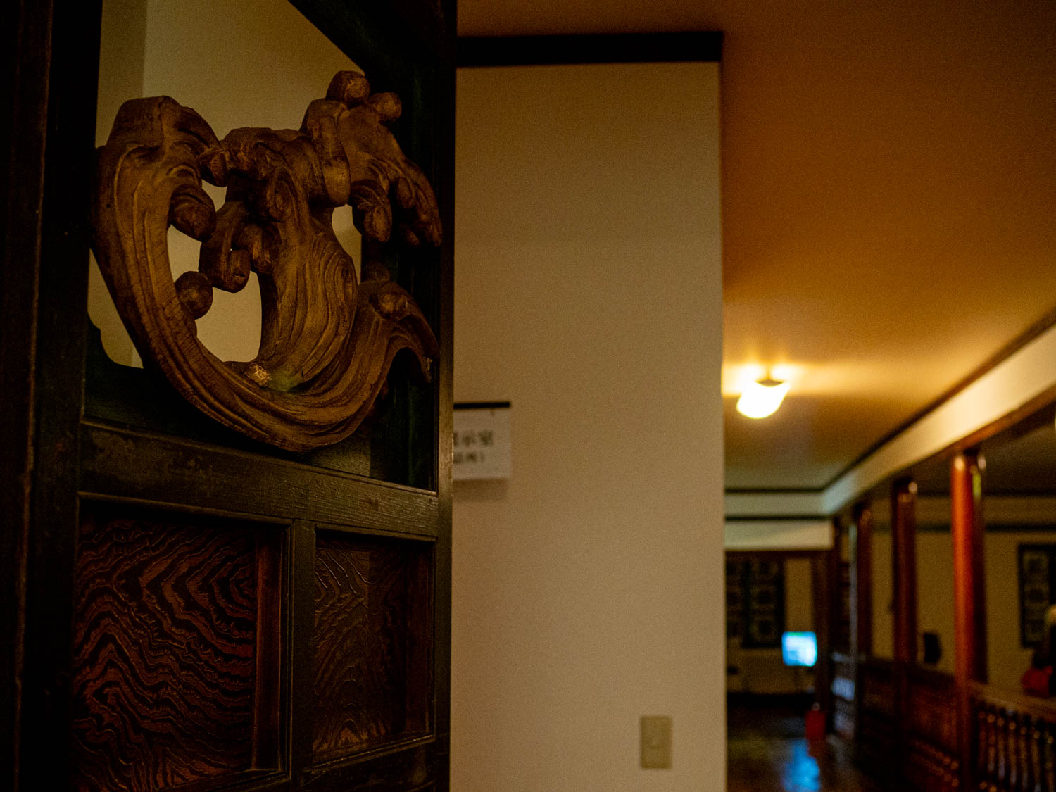 校舎内の扉にも、天使を想像させる西洋の雲のモチーフの装飾。