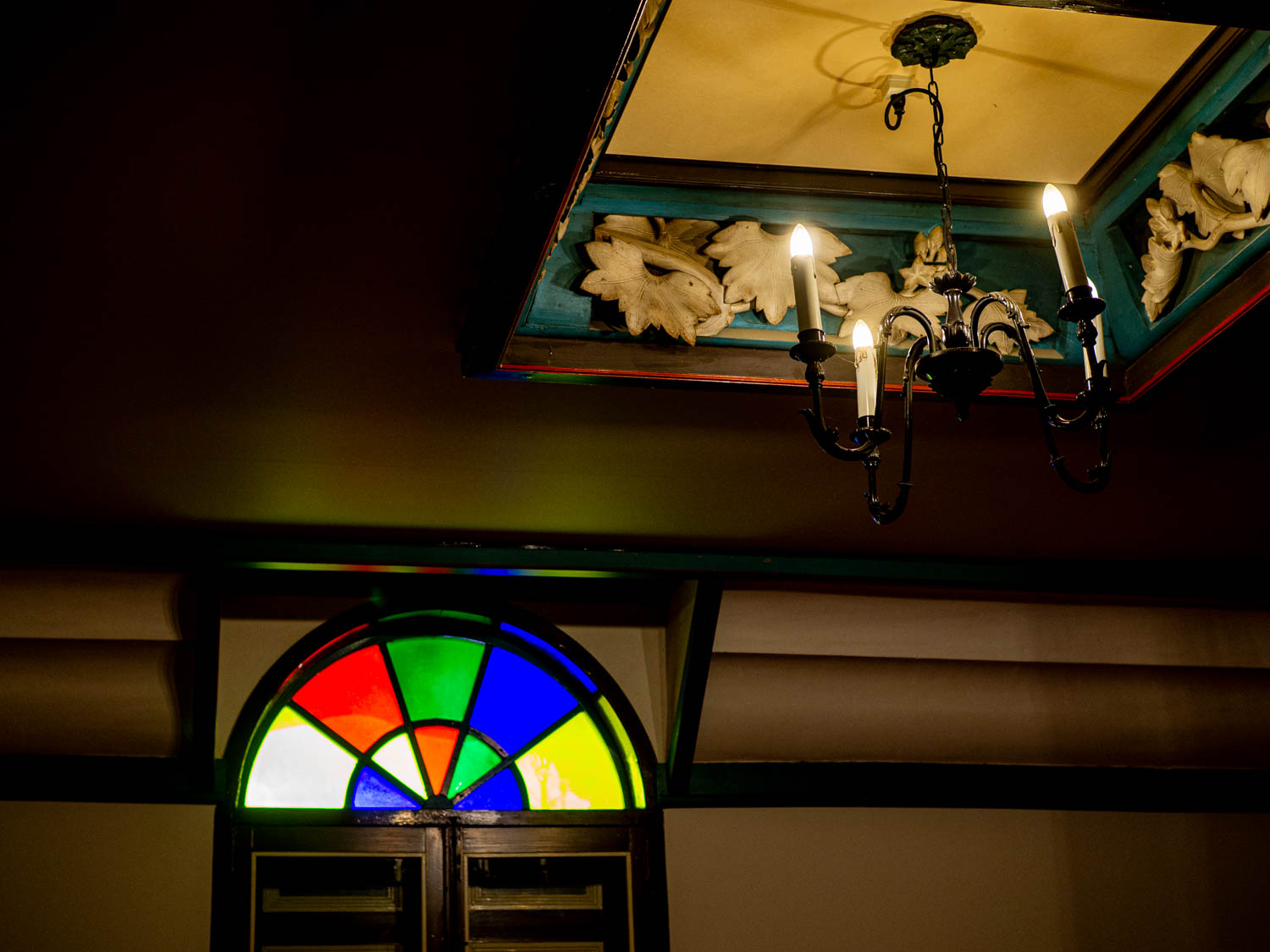 校舎内にも、明治の日本人の考える「洋風」が盛り込まれている装飾を見ることができます。このライトも、天井の装飾も。