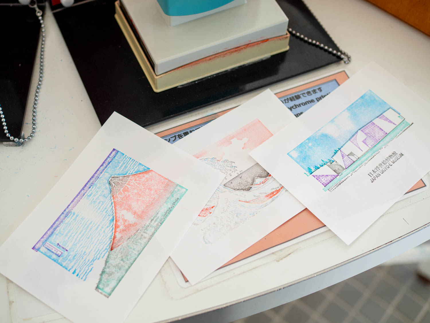 それから、入口にスタンプがあり、簡易浮世絵摺りが体験できます。
