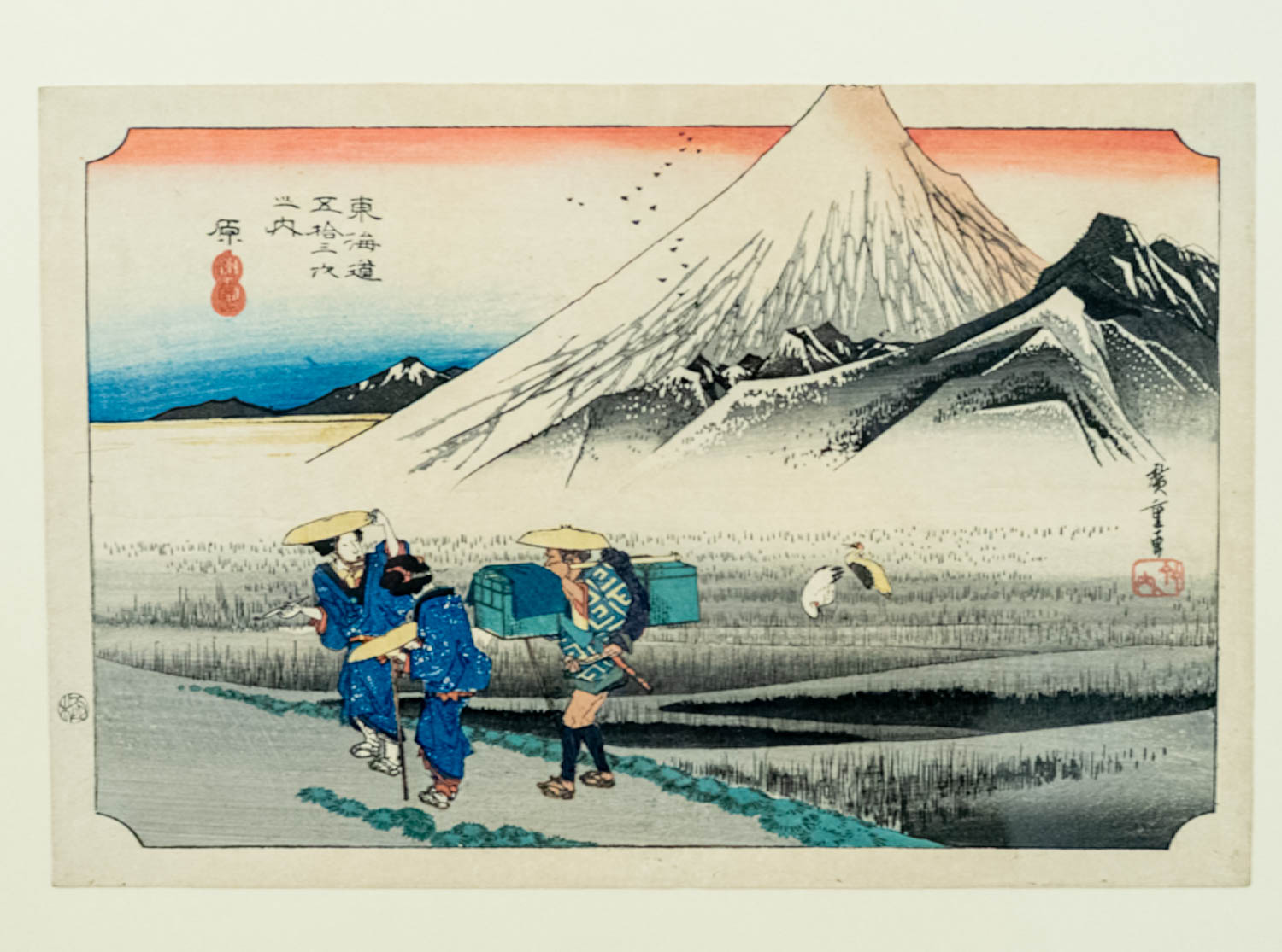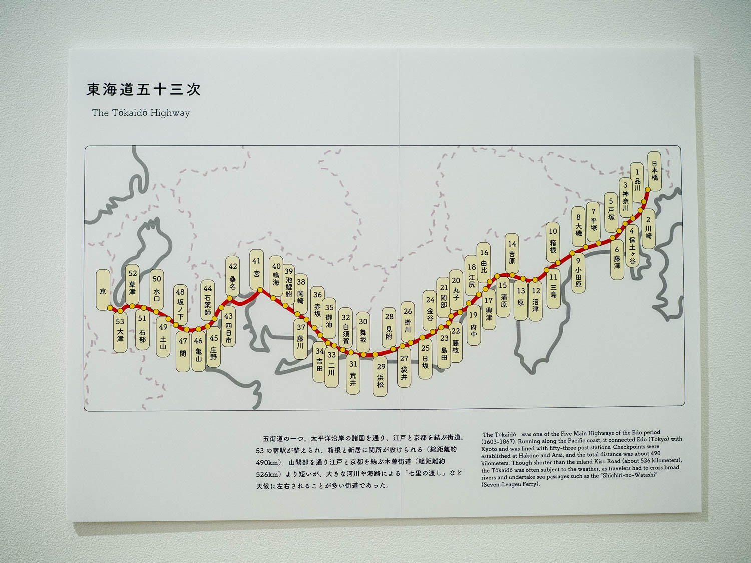 今回の展示は「歌川広重」が書いたものがメインで、それ以前に書かれた葛飾北斎の浮世絵はガラスケースに「それ以前の東海道五十三次」として紹介されていました。
