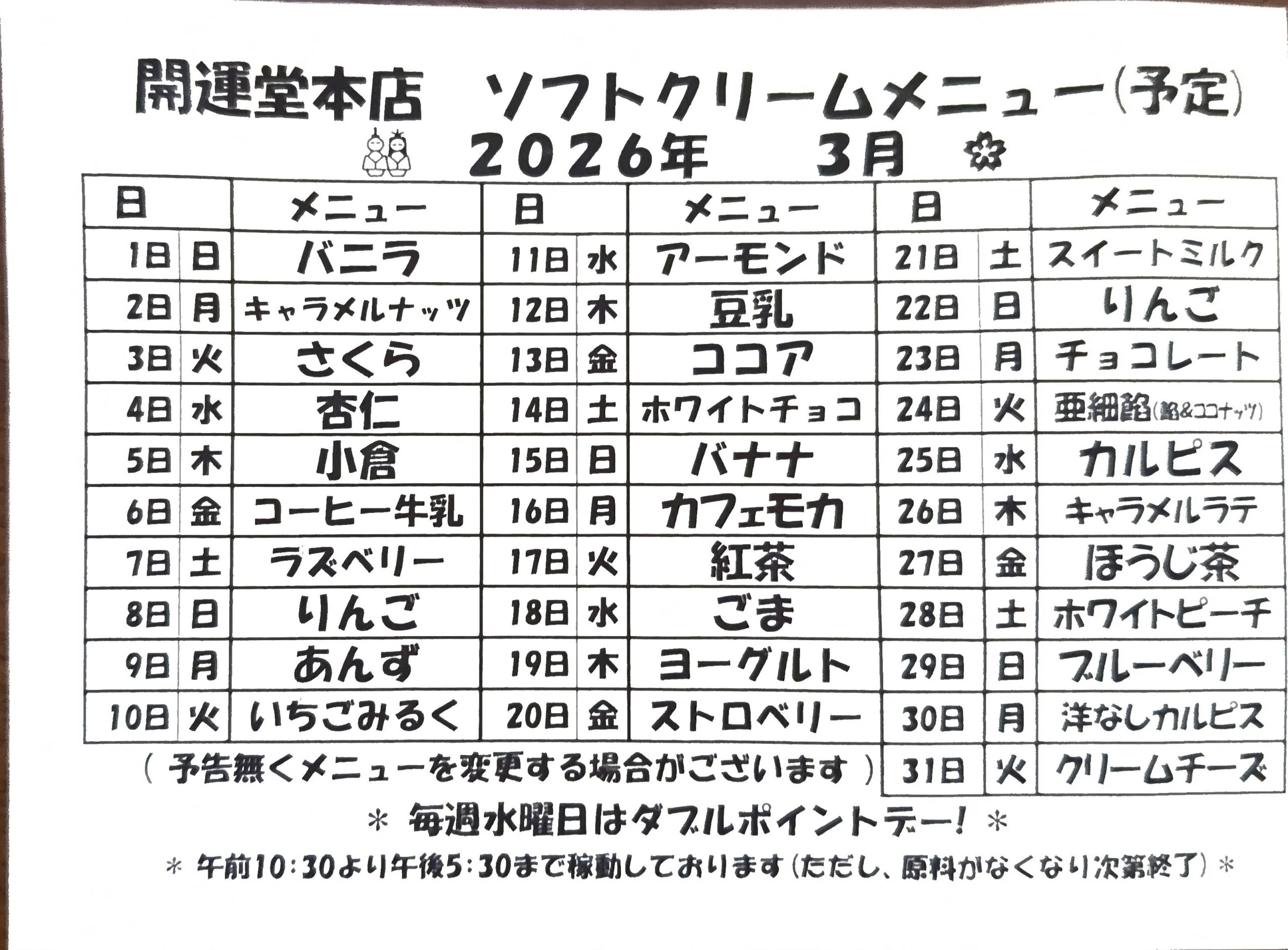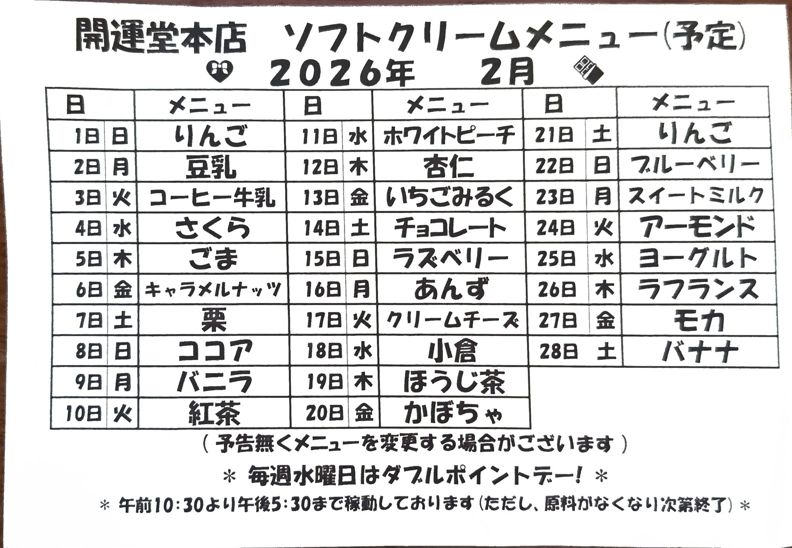 本日のフレーバーは、いつも店外にお知らせしてあります。10時半からの稼働。