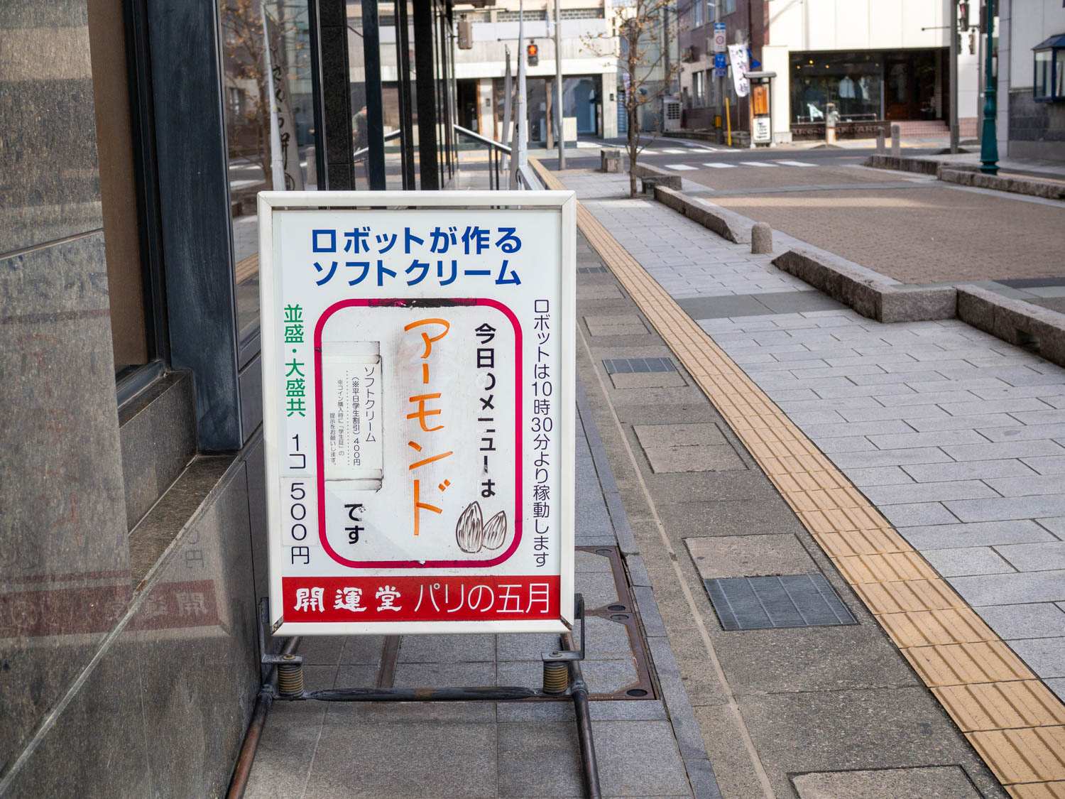 ロボットが作るソフトクリームが食べられるのは、松本駅にもほど近い「開運堂本店」