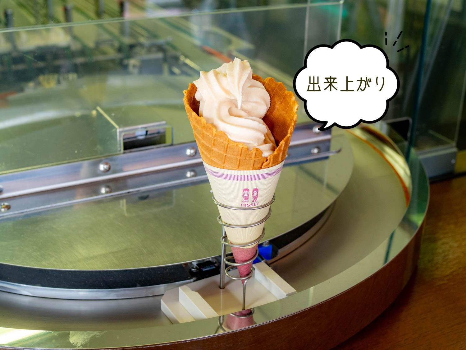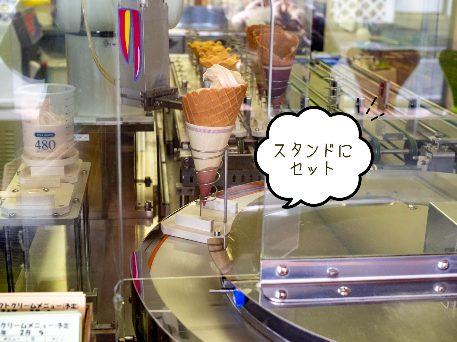 巻き終わったソフトクリームはスタンドにセット!