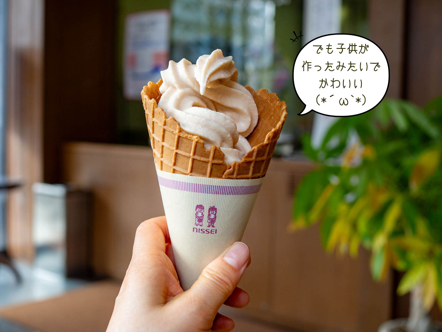 子供が巻いたみたいな愛らしいソフトクリーム