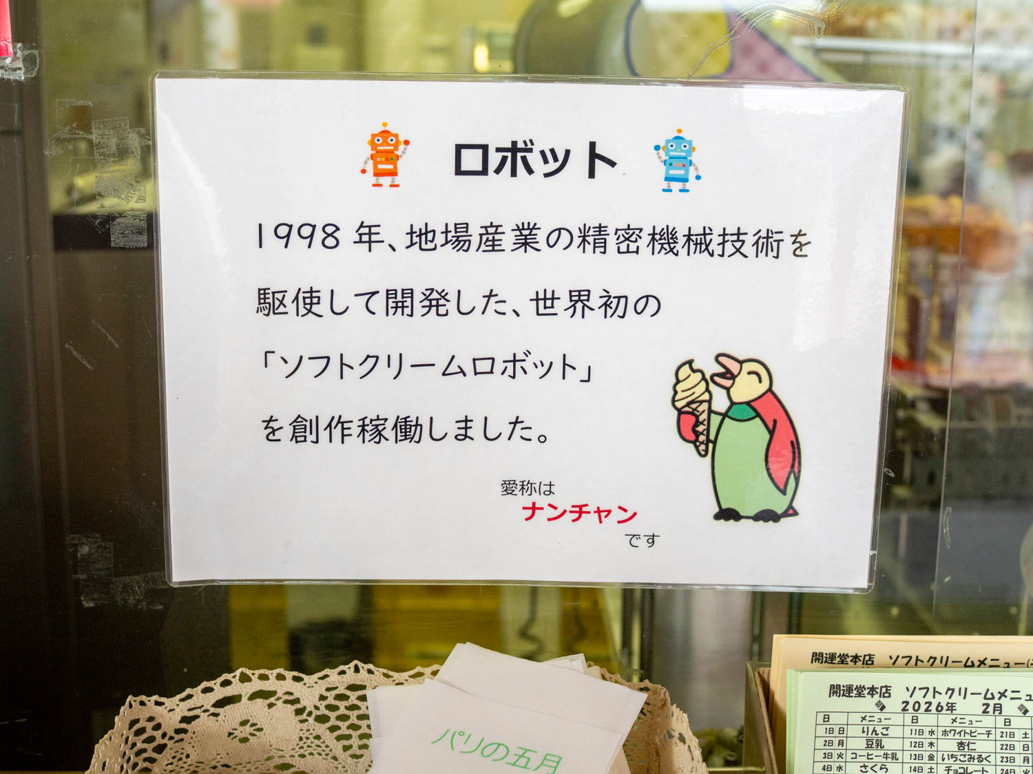 本店では、ちょっと不器用なロボットが作るソフトクリームが観光客にも人気。