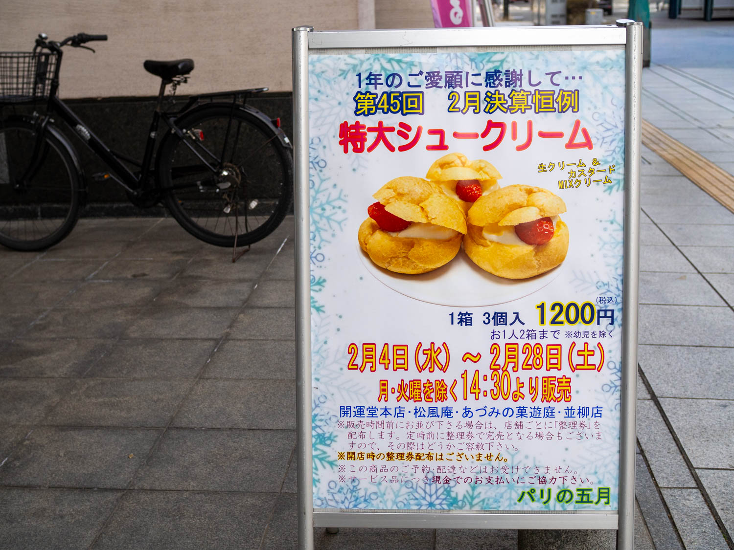 この日は、たまたま休販日で目撃することも出来ませんでしたが、整理券が必要なくらいの人気商品のよう。サービス品のためお支払いは現金オンリー。