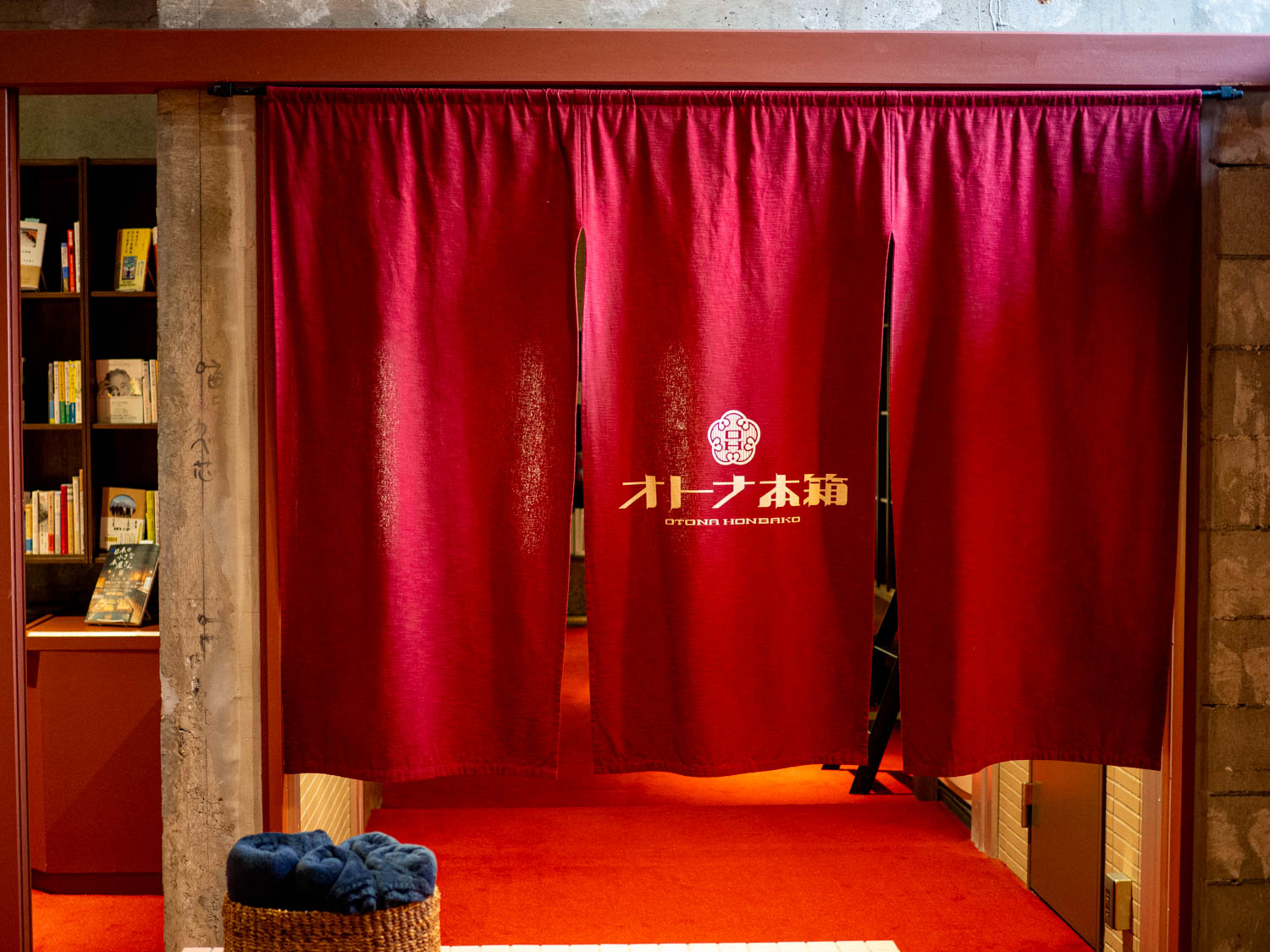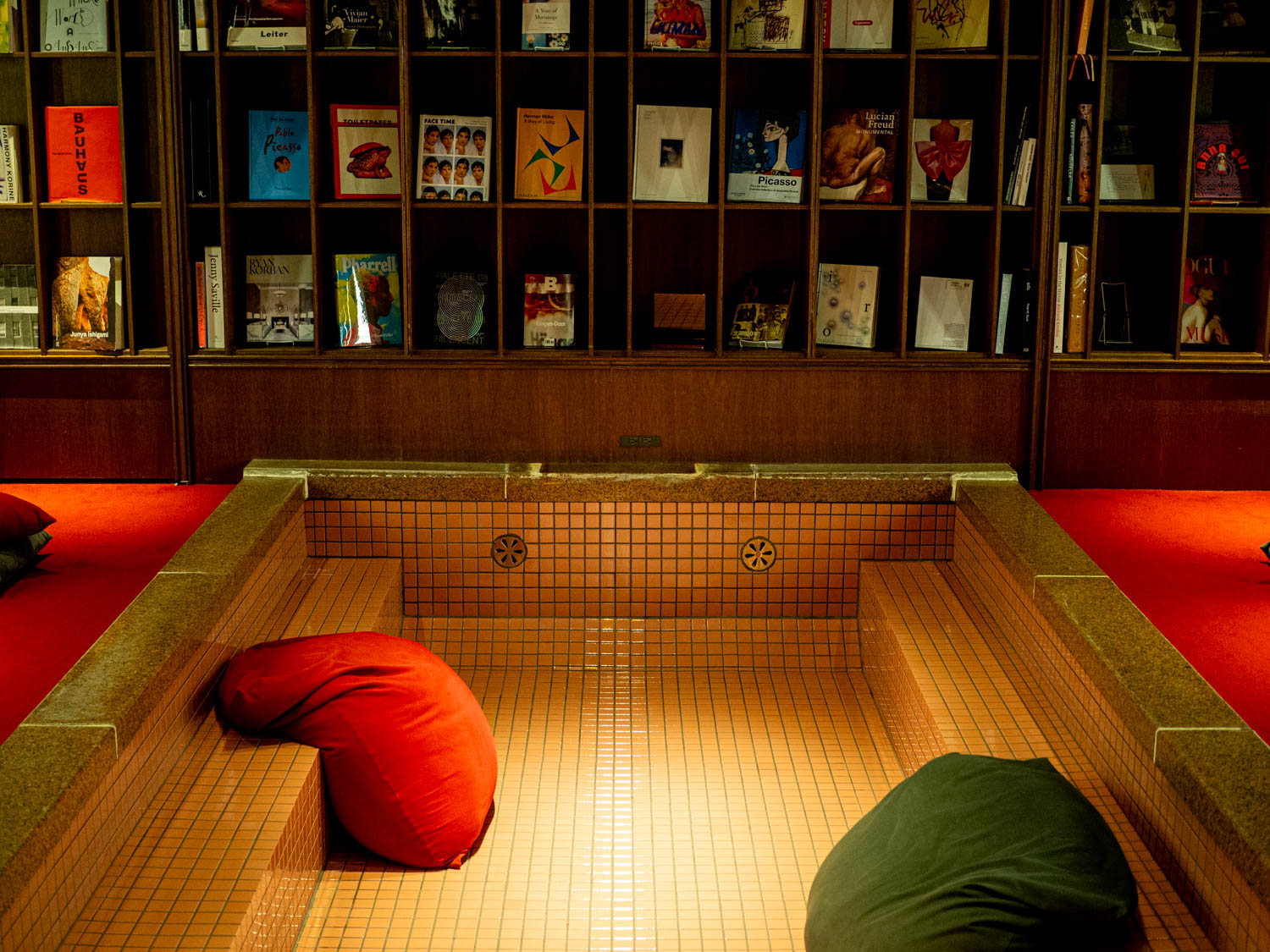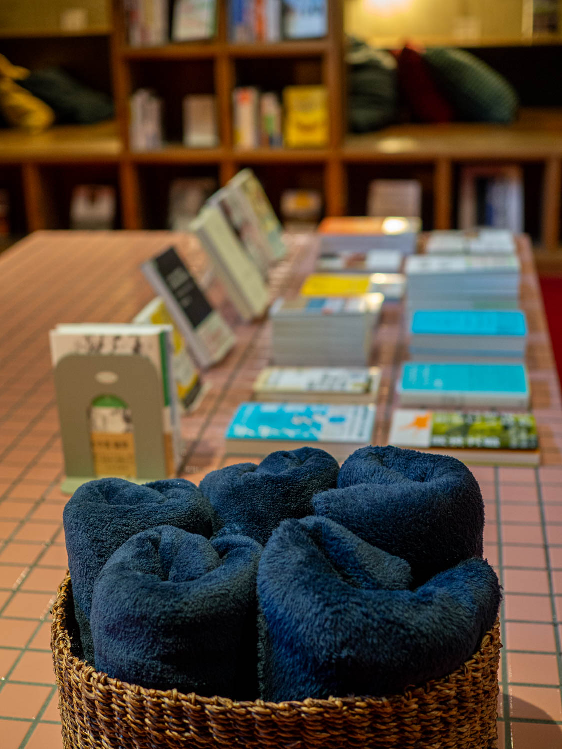 湯船に浸かりながら、寝転がりながら、ゆったりお過ごしください。ひとり(または2人で)本の世界に没頭したい時は、「オトナ本箱」手前にある「おこもり空間」へ。
