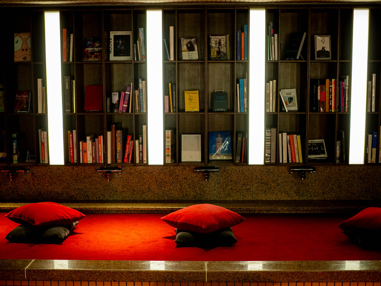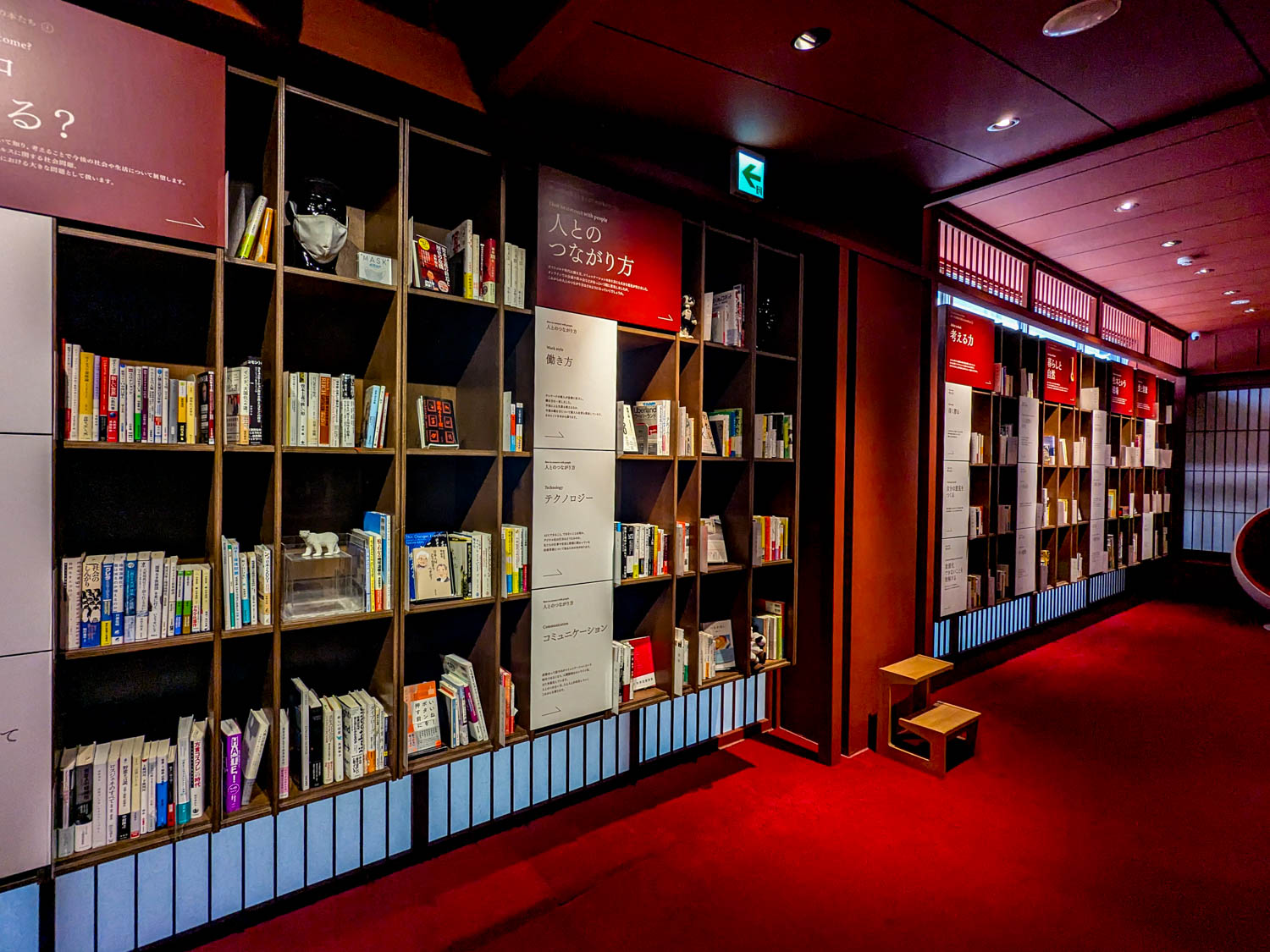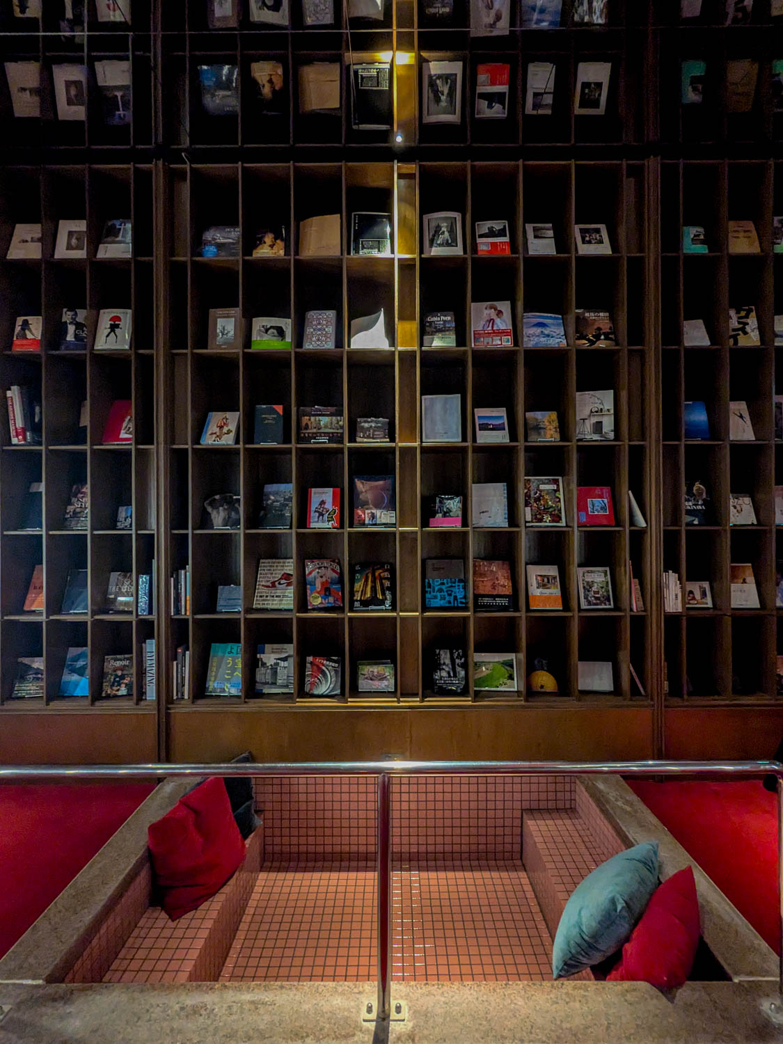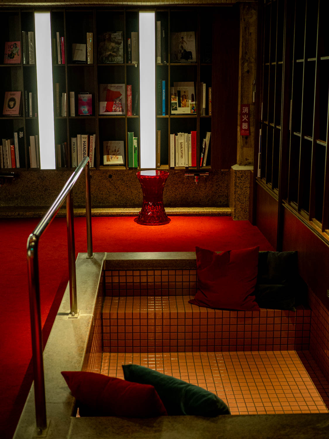 ところどころに、ひっそりと秘密基地のような洞窟のような…さらに照明を落とした小部屋が設置され、気に入った本があれば、おこもりして読み耽ることも出来ます。