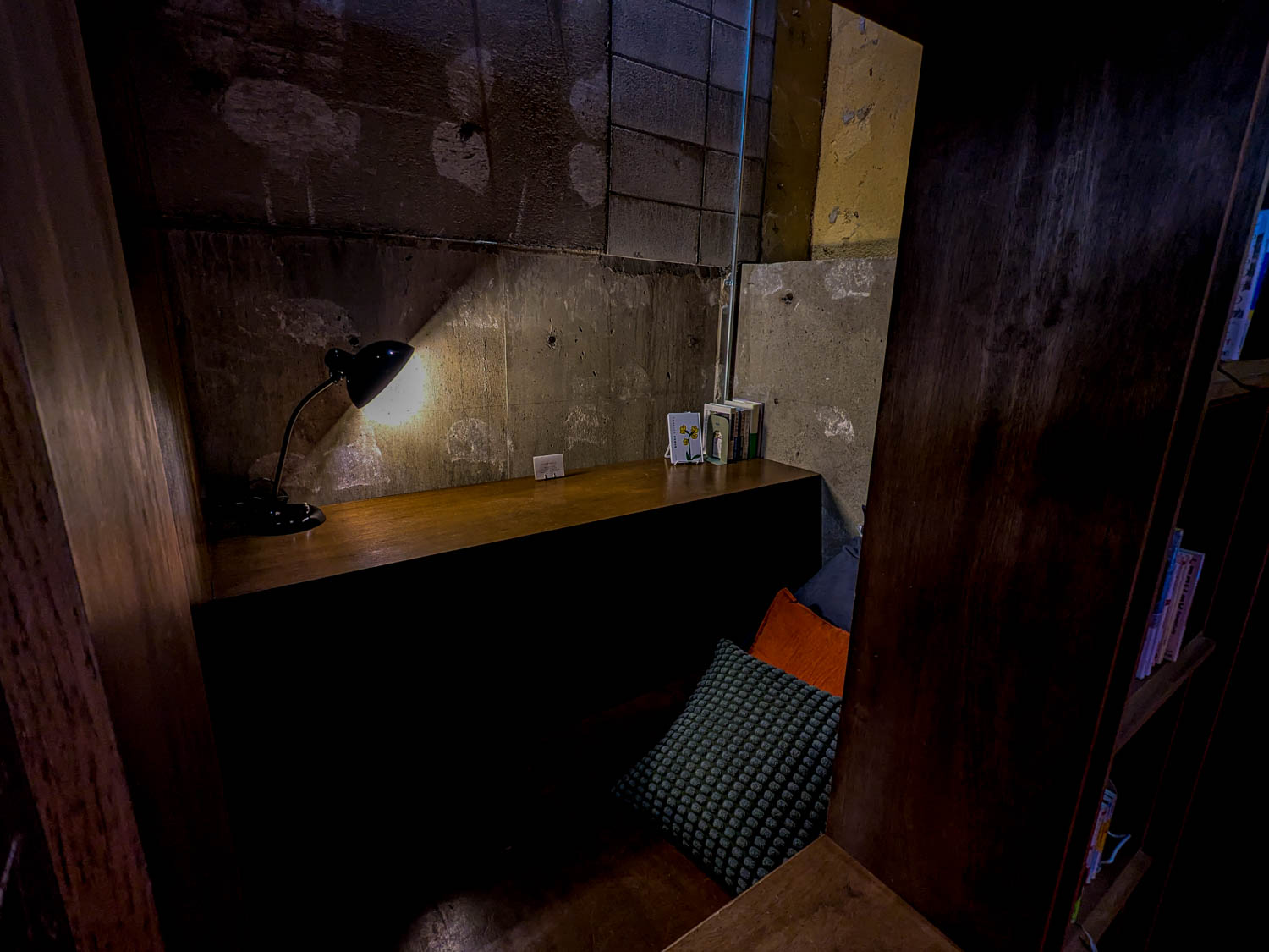 こちらにもおこもり感抜群の小部屋があり、この暗さが逆に本に没頭できそうな雰囲気です。