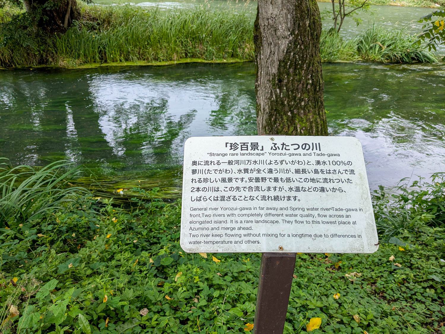 全く水質が違う川だと表記されていますが、本当に色が違う。そして、水温の違いなどからしばらくは混ざることなく流れ続ける…