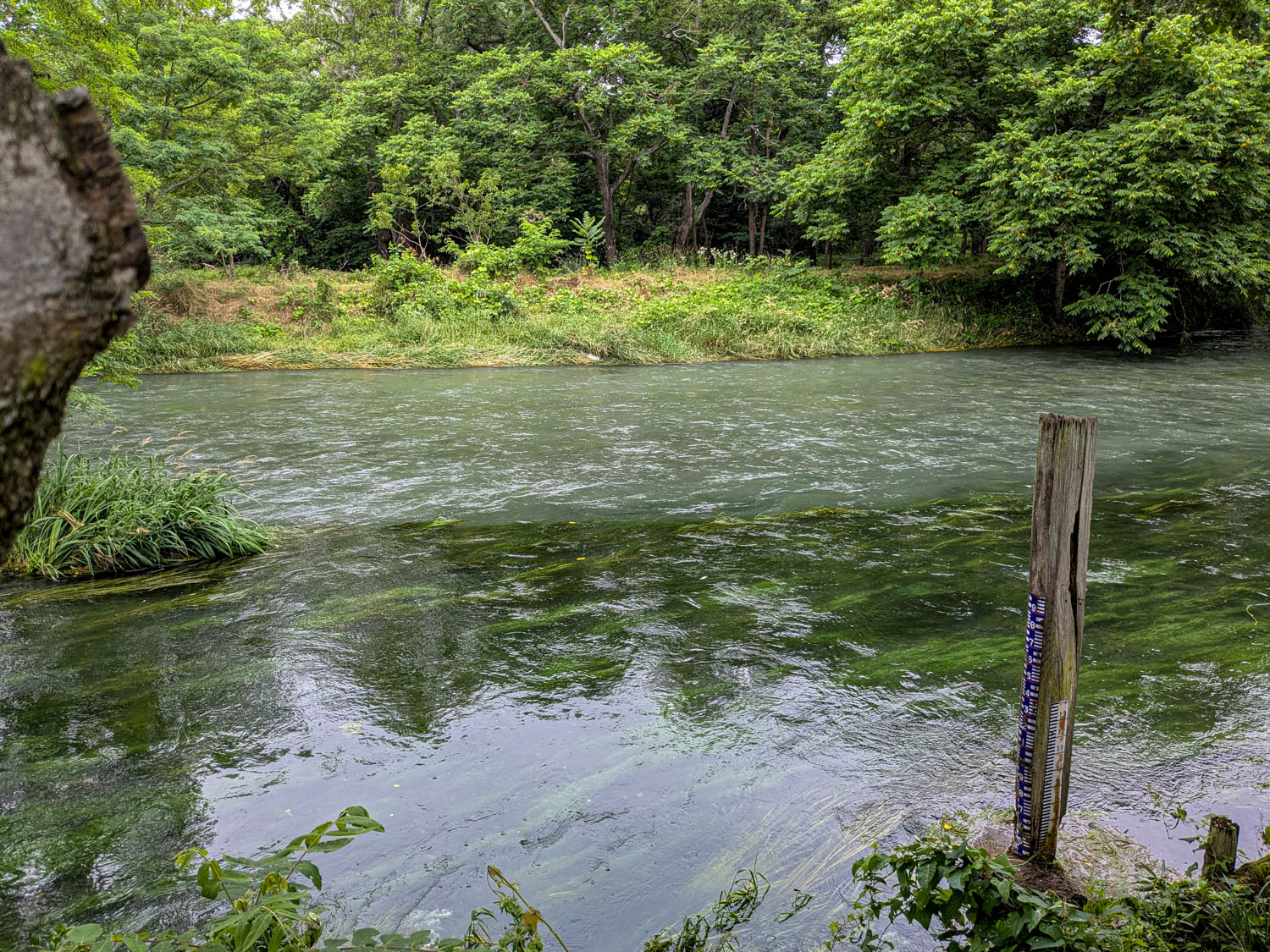 この時は見た目の変化が少なかったので、こんなもんか…とあまり気に留めずにいましたが、透明な水と濁った水が合流してもなかなか混ざり合わない様は興味深く移りました。これはまさに珍百景。
