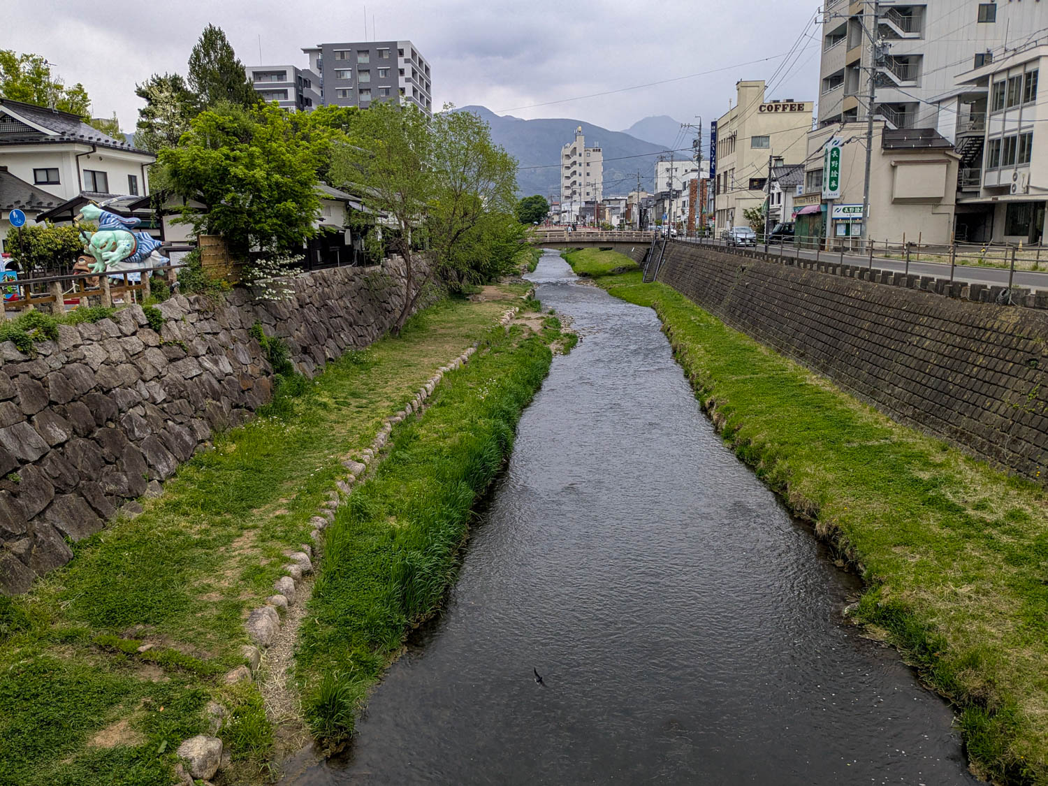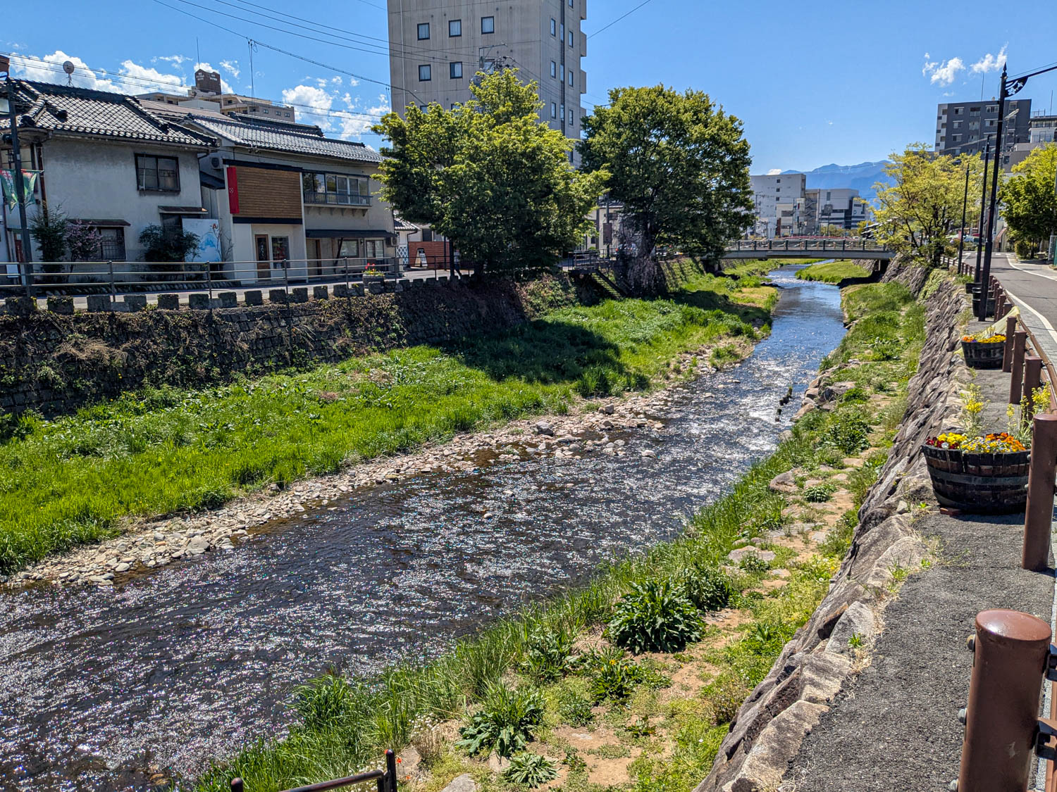 女鳥羽川は子どもの頃から当たり前にあるもの過ぎて、観光客がこんなところに来るのかと不思議に思っていましたが、松本市では有名な老舗のカフェやホテルが並び、城下町の雰囲気を散策される方がいらっしゃるのでしょう。