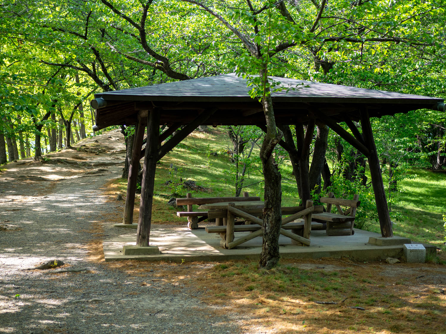 登って数分で、早速東屋があります。