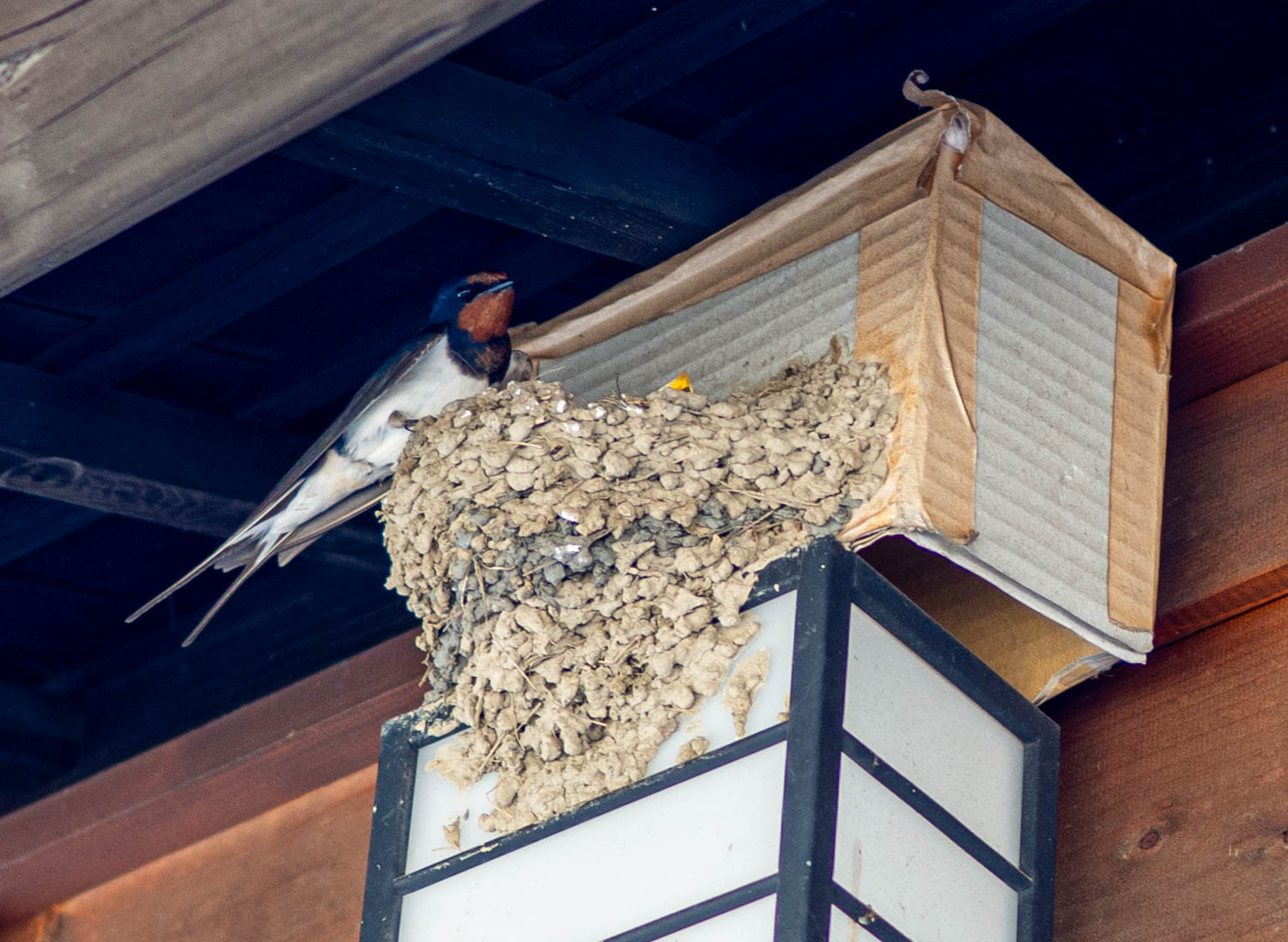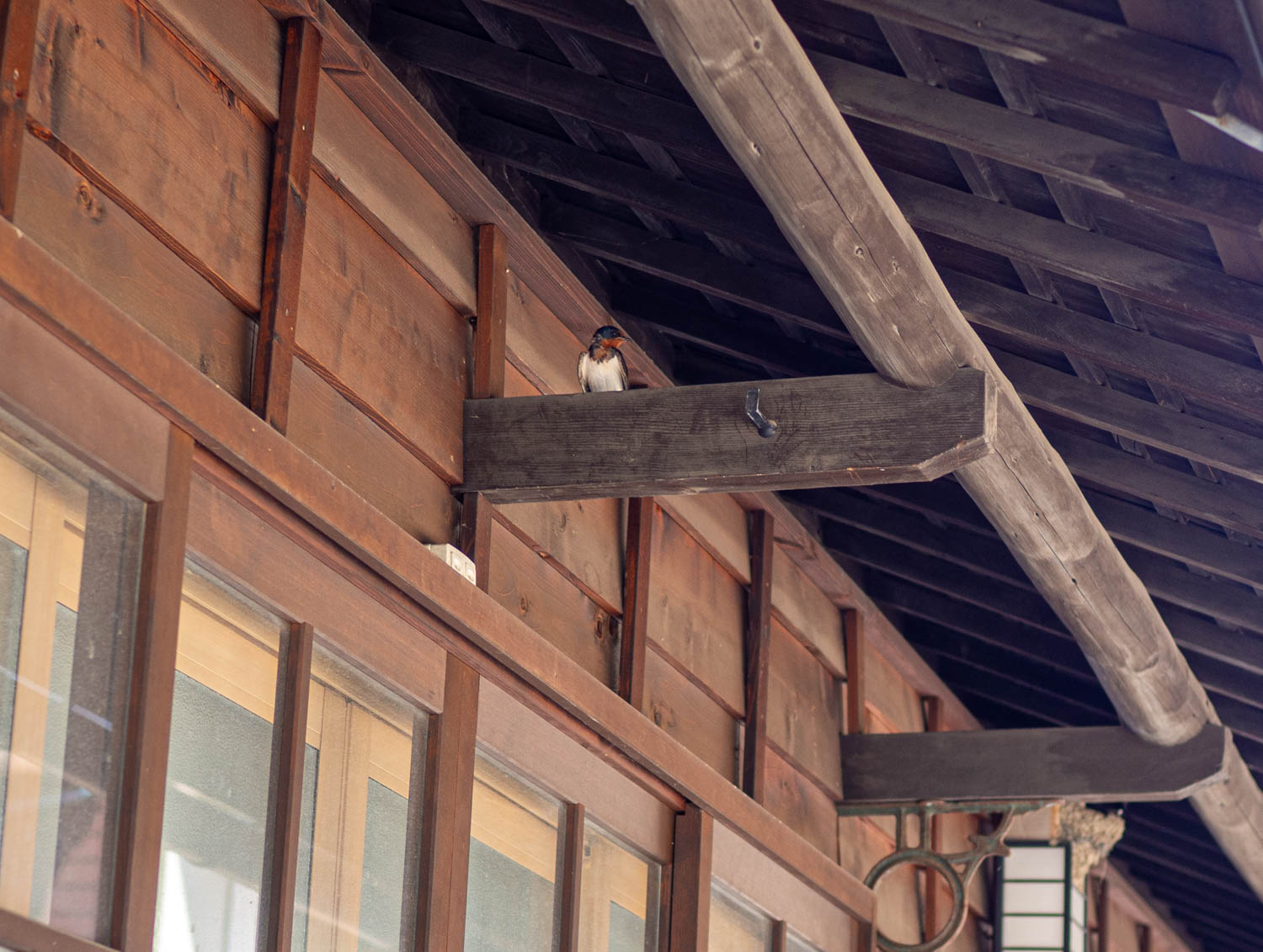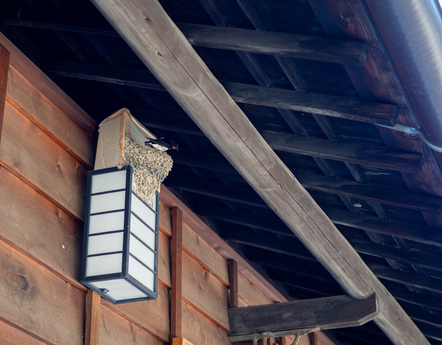 ところどころに燕の巣があり、子育て真っ最中。これは旦那さんが巣を見張っているのかな。