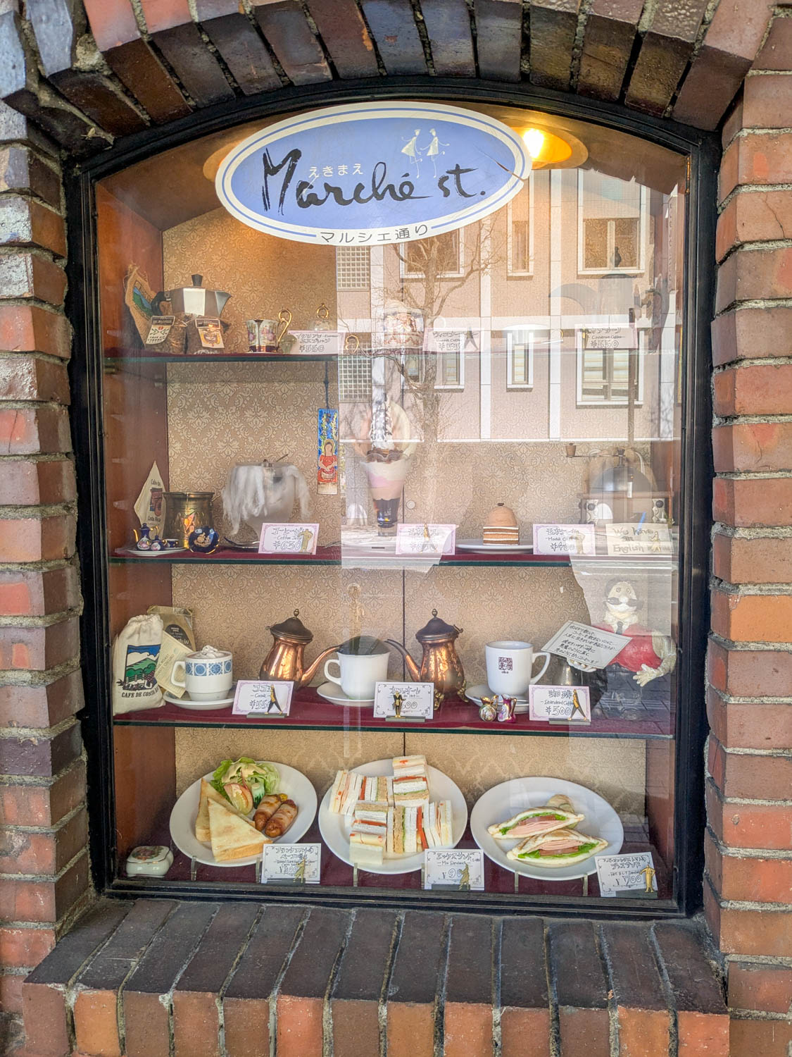 昔ながらのメニューが並ぶ食品サンプル。こういう展示は最近あまり見なくなりました。